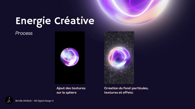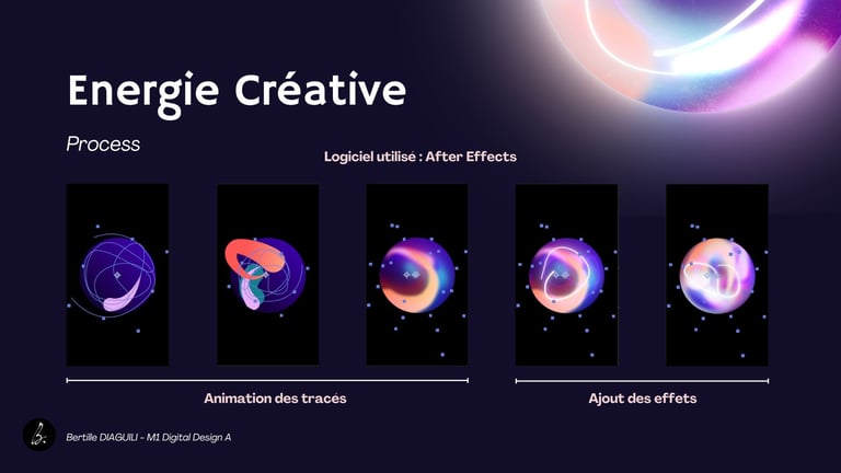 Énergie Créative est une représentation métaphorique du processus dynamique et infini de la créativité humaine. Ce concept explore comment les idées et les techniques en perpétuel mouvement, fusionnent et se transforment dans une sphère démontrant l'infinité des possibilités créatives.