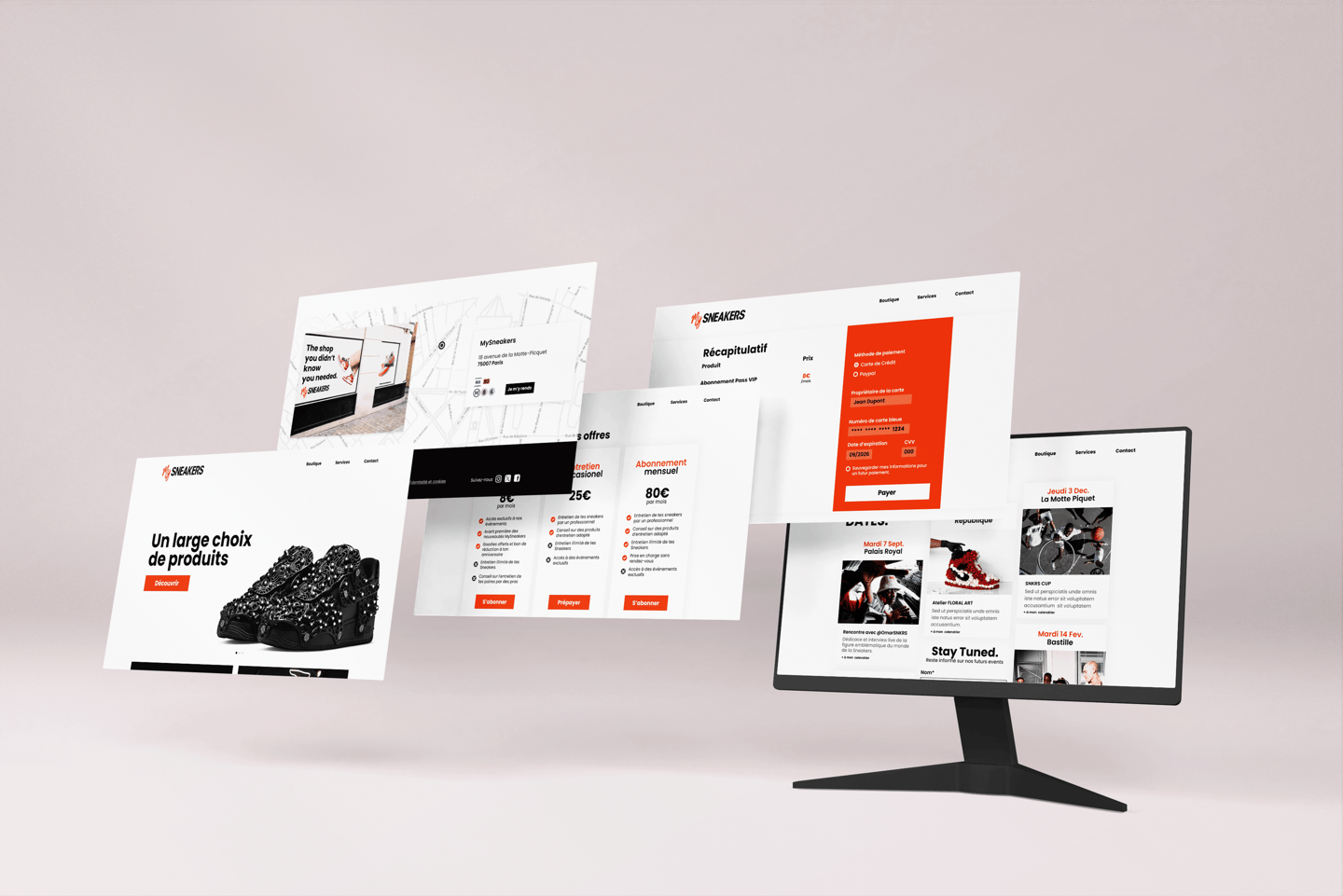 Création d’une maquette UX et UI pour le site e-commerce de My Sneakers, une boutique spécialisée dans l’entretien et la rénovation de sneakers. Réalisé sur Figma, le projet propose une interface claire et accessible, pensée pour valoriser les services de nettoyage, de customisation et les produits associés, tout en facilitant le parcours utilisateur jusqu’à la prise de commande.