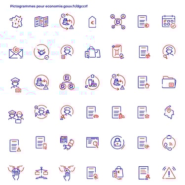 Une sélection de projets réalisés durant mes deux années d'alternance au sein de l’administration centrale de la DGCCRF. Mes missions consistaient à créer des contenus visuels fixes, des animations ou des vidéos destinés à la communication institutionnelle externe et interne, en formats print, web et réseaux sociaux notamment dans le cadre de campagnes de sensibilisation permettant de valoriser les actions de la direction.